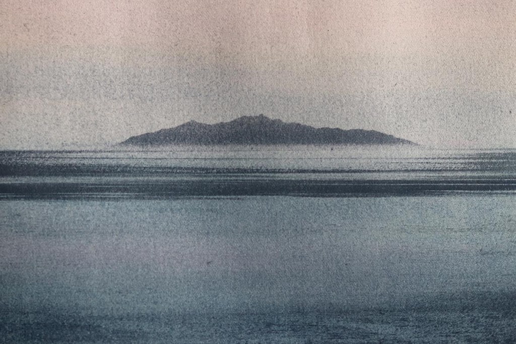 J’avance lentement sur la miniature. Ma méthode est très différente cette fois. Je commence plusieurs choses en même temps. J’explore des techniques, des matériaux, des chemins parallèles. Je miniaturise le cadre de l’Annonciation. Je réalise un cyanotype à partir d’une photographie de l’île d’Elbe. J’ouvre des fenêtres dans la valisette. Je découpe les phrases-souvenirs. Tout cela ressemble à un chantier, c’est une impression qui me rassure.