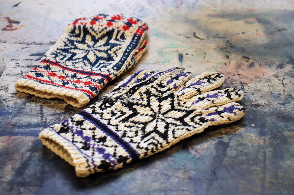 Les deux gants de L tricotés mains par sa mère, le même modèle mais avec une variation de couleur. Elle en a perdu un, elle complète sa paire avec celui de sa sœur disparue, leurs mains réunies m’émeuvent.