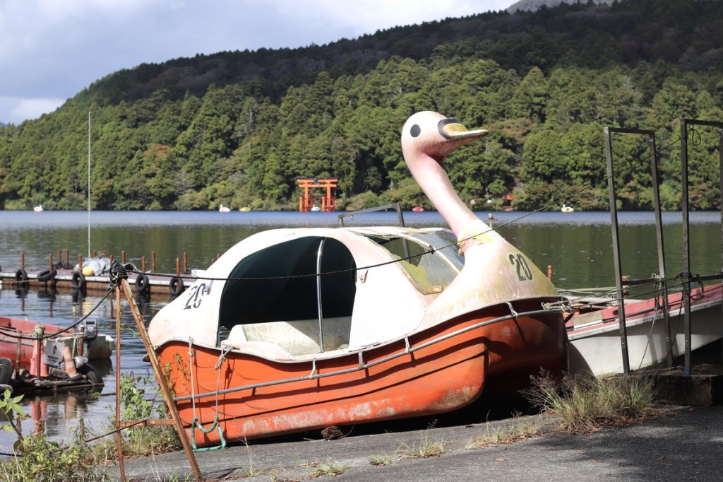 Un peu avant d’arriver à Shin-Matsuda on glisse entre les montagnes, on passe des rivières, on oublie la ville japonaise, je me repayse. Puis Hakone.