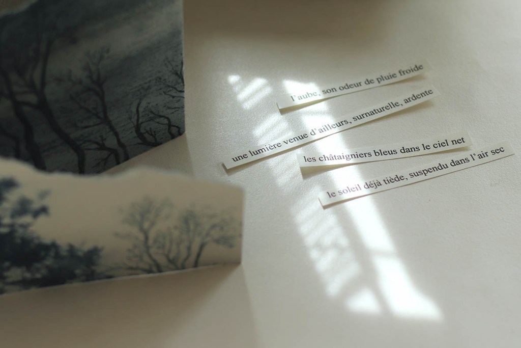 Notre candidature pour les Journées de l’estampe, avec Delphine et Barbara, est retenue. Grande joie. Sortir du c’est possible, aller vers devoir faire. S’organiser, produire, tenir un calendrier. Une énergie nouvelle s’ouvre, qui repousse les chantiers plus flottants. Heureusement la miniature est terminée, je la devine comme un prélude. Elle me donne une piste de travail, les paysages comme des lieux de résonance, où ce qui est perçu appelle ce qui revient. Des paysages augmentés, où la mémoire, la lumière et les traces se superposent, comme si l’image pouvait contenir à la fois le présent du regard et les strates invisibles du souvenir.