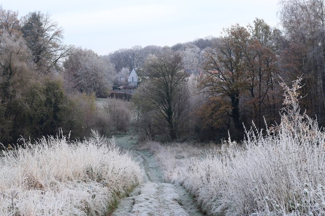 Il y a au matin le givre qui transforme le paysage, installe un silence apaisant et féérique.