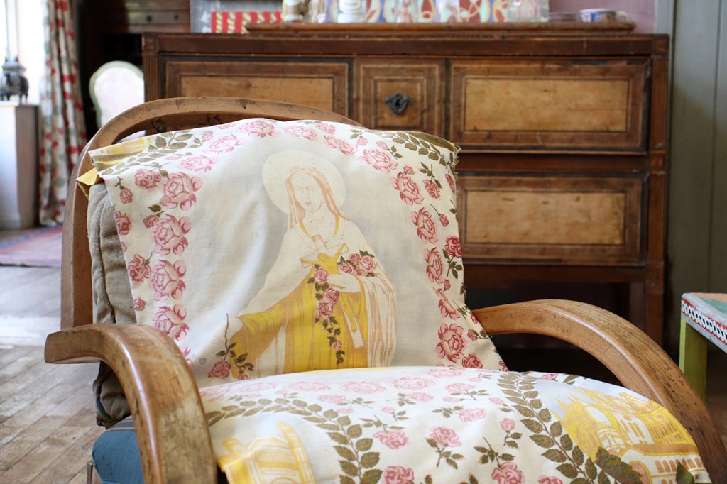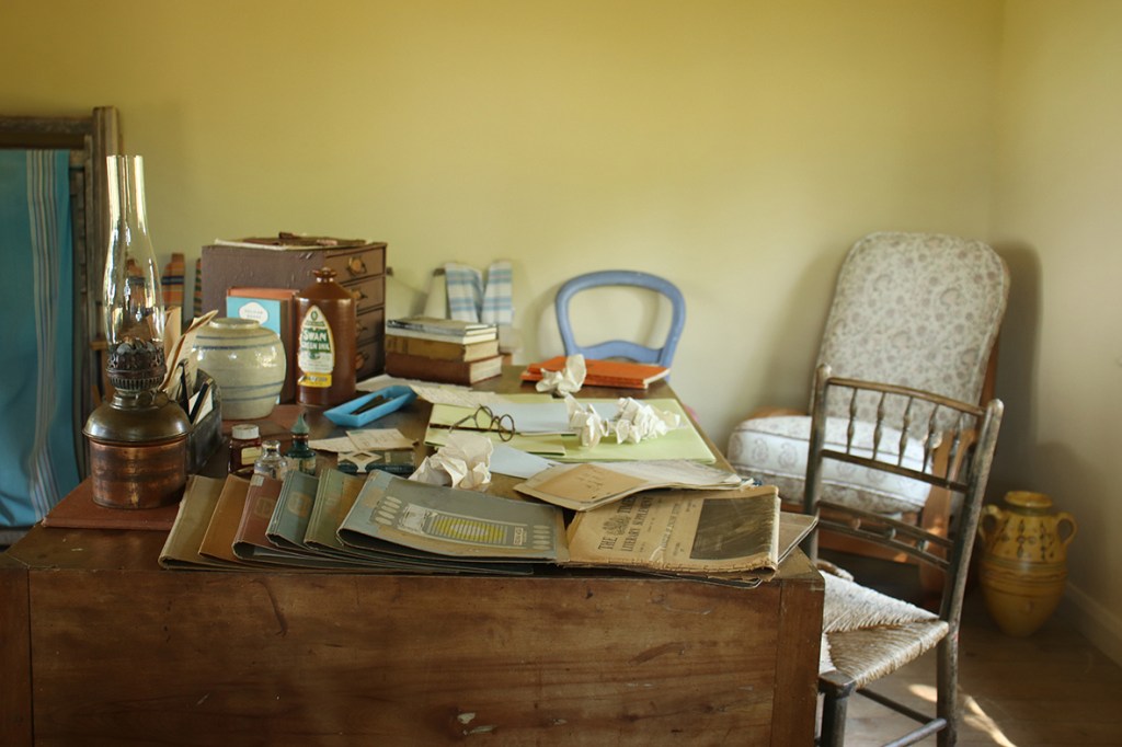 Elle entre dans la boutique, j’écoute distraitement sa voix aérienne, son mari lui a offert une tasse, vous voyez il y a une fêlure, mais je l’adore, est-ce possible de l’échanger ? Puis elle entre dans l’espace où nous exposons. Longue chevelure rousse, regard azur. Elle découvre ma safe place miniature, reste postée devant. .Je m’approche, on parle de la genèse du projet, de Virginia Woolf, du voyage anglais, d’Alice Liddell et des sœurs Brontë, ça va vite. Elle est très réceptive, se demande si on a ressenti leur présence, oui au cimetière. J’évoque surtout la chaleur, le trouble de la sensation d’été quand on imagine Charlotte et Emily perdues dans la brume. Me reviennent les paroles de N, accompagnant son père dans les camps où il a été déporté pour y tourner un documentaire, l’étonnement de réaliser qu’il avait pu vivre à cet endroit de belles journées ensoleillées. Mon interlocutrice aborde alors son voyage à venir, la Hongrie sur les traces d’aïeuls disparus, des artistes issus de l’aristocratie hongroise. L’appréhension des malles à ouvrir, les photographies, les œuvres. J’évoque les retrouvailles improbables avec ma tante, Comanche, elle me dit qu’elle écrit sur sa mère. L’émotion s’épaissit autour de nous. On convoque Hélène Gaudy, Anne-Marie Garat, on échange nos mails, je découvre son patronyme de roman. En partant elle prononce cette phrase magique, tout ça à cause d’une tasse fêlée.