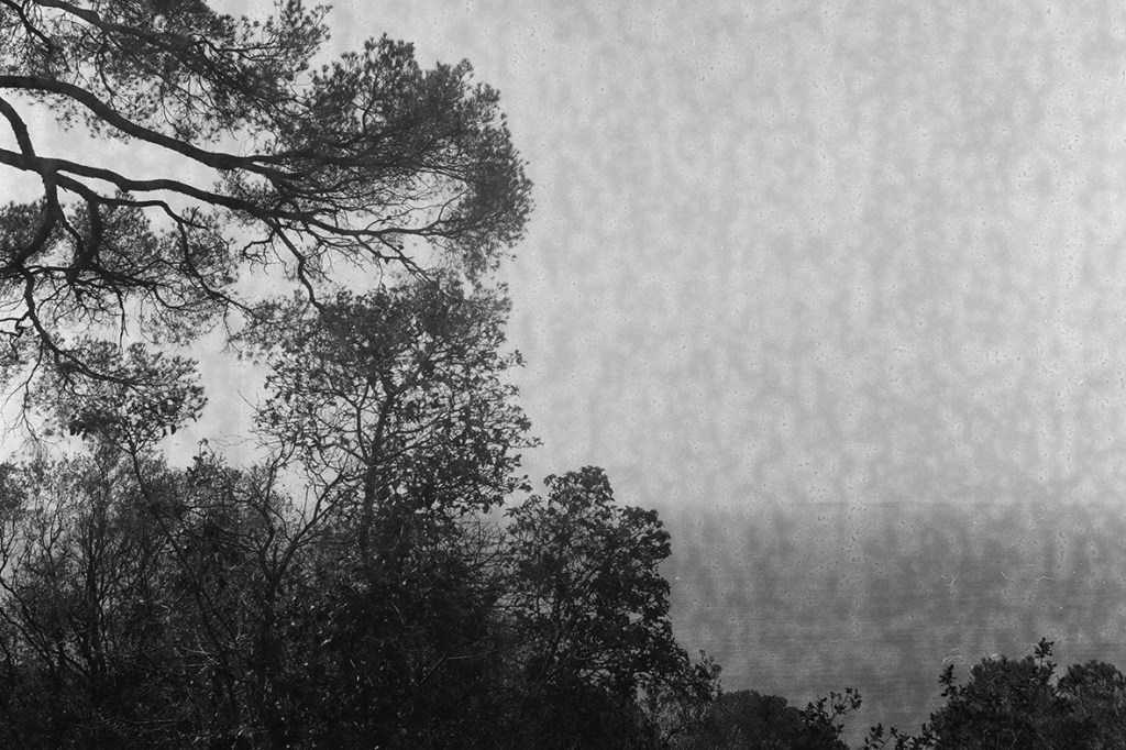 Comme me l’a suggéré Damien je décide de faire des tirages cyanotypes à partir de négatifs des photos prises à quatre mains au Yashica avec Nina. J’enduis le papier dans la salle de bain, je lui trouve finalement une bonne raison de n’avoir pas de fenêtre. Au moment des tirages bien sûr le ciel se voile, cette fois je vérifie les UV, ajuste les temps d’exposition. Craignant que le temps se gâte tout à fait, je procède à l’arrache. 6 x 6 cm c’est petit. Il y a beaucoup de flou et les expositions sont imparfaites. Je fais sécher sous buvard. Je rassemble les bandes en un petit paquet compact, je les glisse dans la valise pour Nice. Je cours acheter le dernier livre de Claude Favre, Membres fantômes, dont une chronique partagée sur le web vient de me rappeler l’existence, je l’ouvre au hasard, lis la phrase qui s’impose, le présent aide parfois à la beauté.