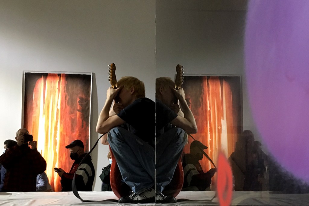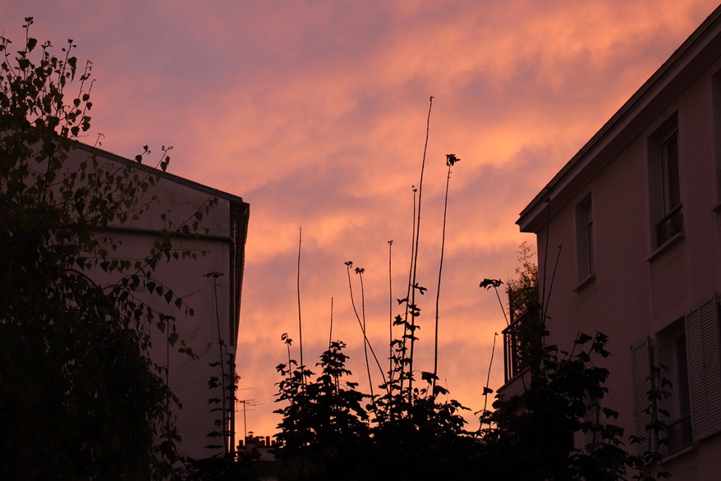 À l’heure du journal souvent se repose la question de la forme, la peur de la routine. Mon côté discipliné l’emporte, je remonte le temps, un paragraphe par jour, je suis parfois récompensée par une révélation. Mais cette semaine il s’est passé une chose particulière, qui occulte le reste, je voudrais presque n’écrire que cette journée de dimanche. Auparavant me souvenir à la hâte du retour de L à l’atelier après trois semaines d’absence. Elle portait son pull préféré, nous avons fêté son anniversaire en mangeant les délicieux cakes qu’elle a apportés, arrosés d’un verre de crémant. Puis nous avons déjeuné au thaï, avec L, J et F. La serveuse — dont je ne connais pas encore le prénom mais qui a l’air de chérir sincèrement L — nous apporte au dessert une pile de nougats au sésame plantés d’une bougie. Je veux me souvenir du café avec Piero et Anne, réconfortant et joyeux. De la presque timidité de Nathalie qui hésite à monter à la maison récupérer un exemplaire d’Obliques strategies qu’elle pourrait offrir à Louise. Je lui propose de tirer une carte, j’observe sa méthode, battre le jeu puis compter jusqu’à 9 : Abandon normal instruments. Du ciel flambant vendredi soir que je n’ai pas eu le courage de filmer. De la belle présence aujourd’hui de Claude Royet-Journoud dans la salle du Chansonnier, que je n’ai pas osé photographier.