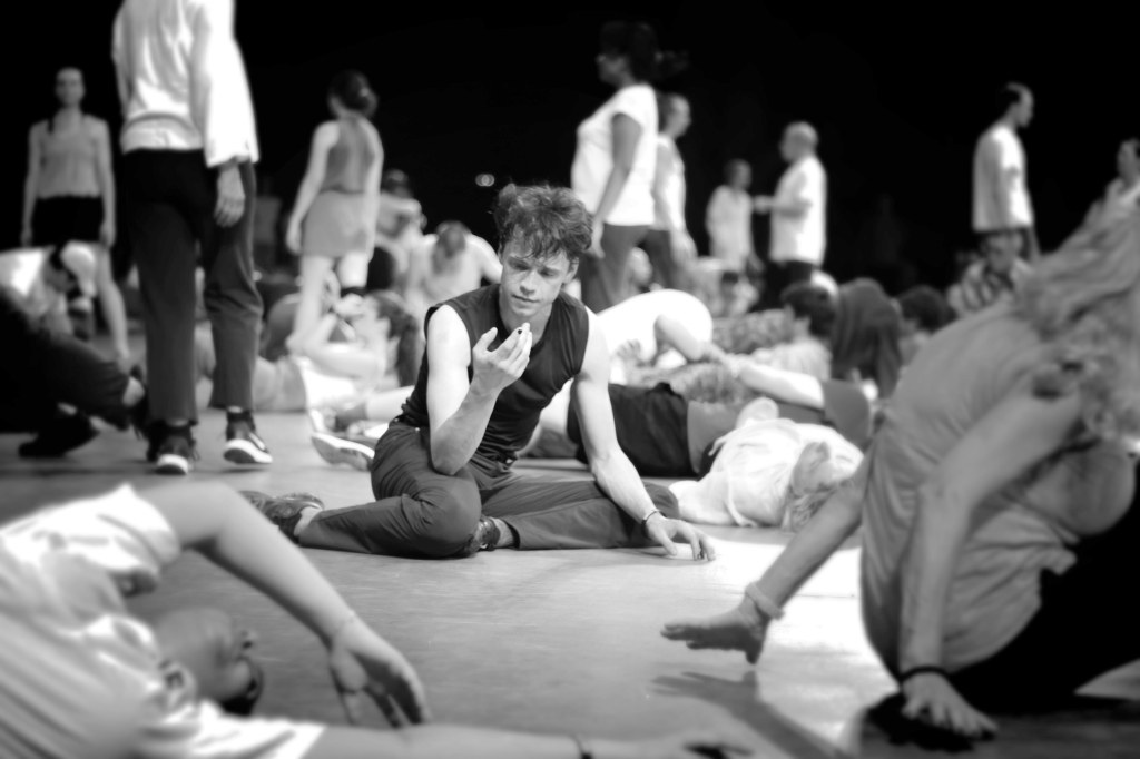 Je vais au Grand Palais pour voir mon amie Céline performer au cœur de Cercles, un atelier recherche chorégraphique imaginé par Boris Charmatz. En sortant du métro j’avais faim mais à cette hauteur de l’avenue des Champs Éysées il n’y a rien, seulement des perspectives immenses. J’aperçois un kiosque, je commande un hot dog gratiné. Je vais m’asseoir sur les marches du Grand Palais, il y a autour de moi le public qui vient pour la danse et je mange mon hot dog dégoulinant de sauce moutarde, je ne suis pas raccord. Philippe me rejoint, nous entrons dans la nef et nous assistons médusés à l’atelier spectaculaire. Deux cent danseurs, des amateurs, des professionnels, des corps singuliers, de tous les âges, de toutes corpulences. Réunis à l’intérieur d’un cercle, ils répètent une chorégraphie mouvante, qui se construit sous nos yeux. Elles et ils sautent, courrent, frappent, grimacent, s’enlacent, lèvent le poing, une langue est en train de naître. Ils reprennent des boucles sous la direction de Charmatz qui leur réclame plus de présence encore. Les corps occupent tout l’espace, des gestes singuliers nous racontent des histoires de peur et d’amour, l’énergie des danseurs nous traverse. La musique de Meute participe à la transe. Nous ne dansons pas, mais nous sommes dedans. Il y a des entrées, des sorties, chaque mouvement nous révèle de nouveaux corps, de nouveaux visages. Nous sommes rentrés à la maison porté par l’energie reçue sous la nef, presques dansants, joyeux.