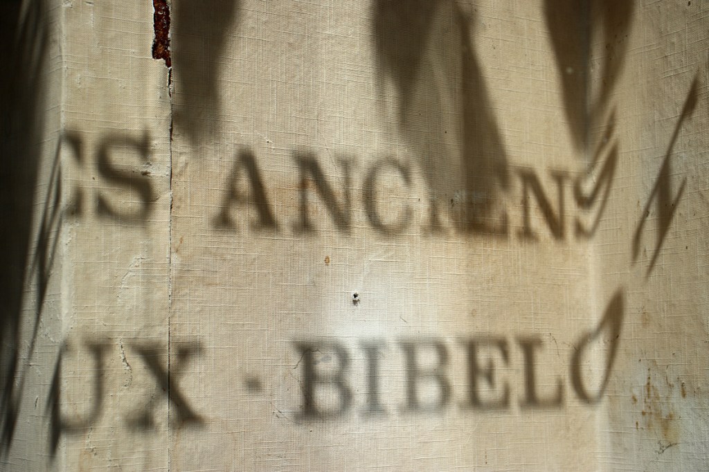 Nous venons ici en dehors des offices et concerts. À chaque fois, l’église est fermée, mais collant mon objectif devant l’interstice entre les deux portes j’ai l’illusion d’y entrer. Tout devient mystérieux dans le halo formé par les deux battants de part et d’autre de l’objectif. Nous faisons le tour de l’église, le lieu est désert, il parait presque abandonné, m’évoque un terrain de jeux d’enfance où je me serais rêvée puissante. Un matou gras finit par s’approcher de nous comme s’il avait quelque chose à me dire.