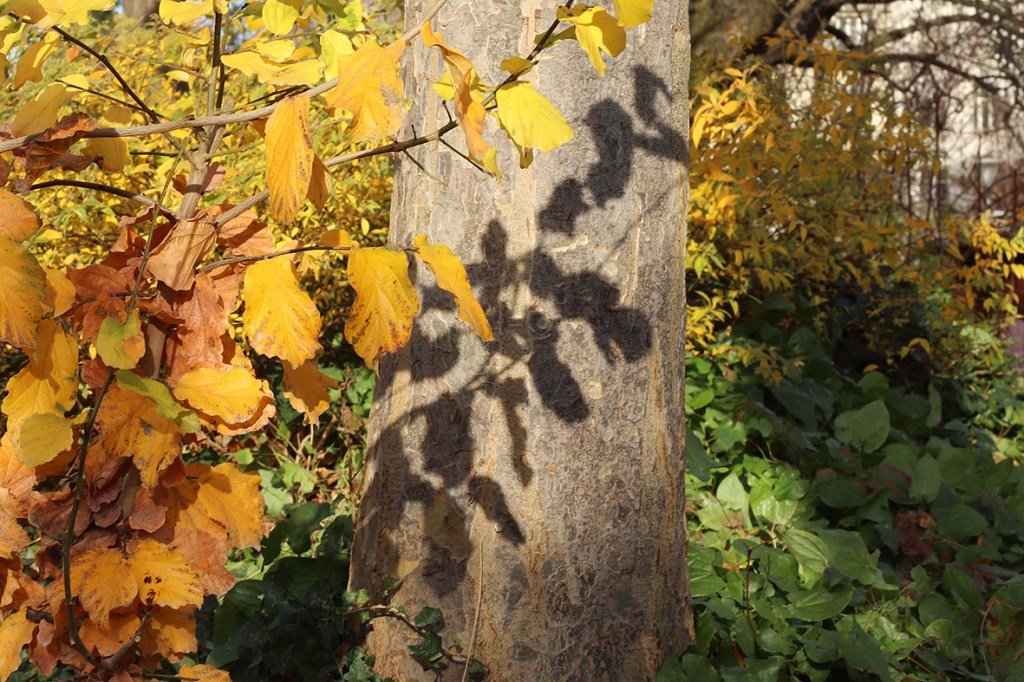 Il me dit que, parfois, je fais des têtes, on dirait que le petit chat est mort. La ville s’exalte sous une lumière nouvelle, miroitée dans les flaques formées la veille. Dans le soleil, une feuille parfaitement collée sur le dossier du banc m’apparaît comme un indice à déchiffrer.