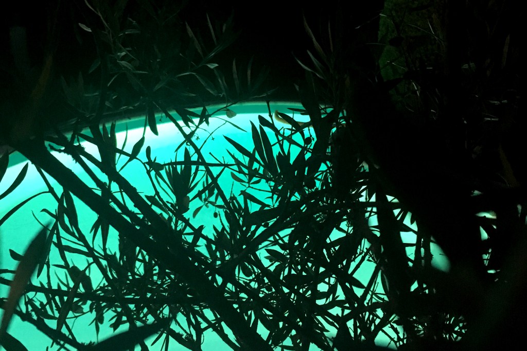 Descente au plan de Linéa pour déguster la socca du cousin, trois cent degrés dans le four à bois, la voute blanche, huiler la tôle, y verser la préparation à base de farine de pois chiche, la glisser d’un geste vif, impression que ces gestes sont réservés aux hommes — comme tourner a pulenda, photographier la phosphorescence de la piscine éclairée à travers le feuillage des oliviers, les marcassins mignons traversent dans les phares, guetter la lune montante au retour.