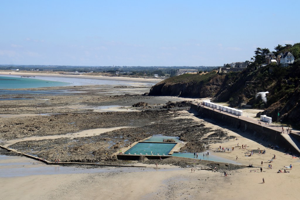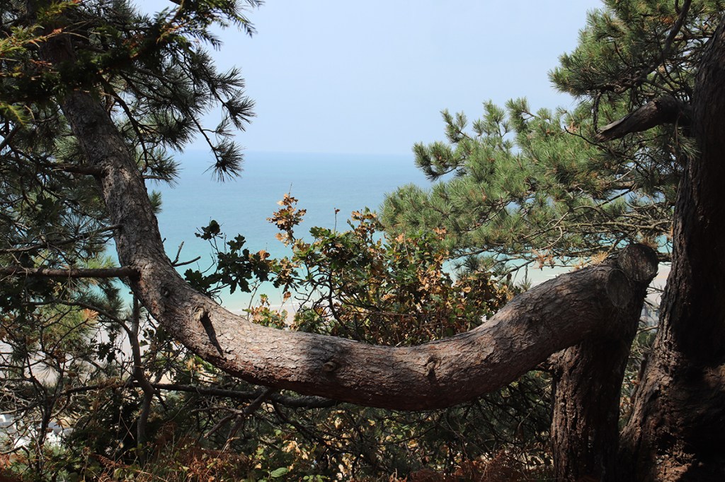 Comme partout il a fait cette chaleur hors norme, la Manche était douce, la falaise avait pris des reflets blonds, dans la vallée les fougères se recroquevillaient, on traversait le lit sec du Crapeu quand je me souvenais de nos crapahutes sur les troncs immenses jetés comme des ponts. Sur le sentier au retour de Vauban, les mûres avaient séché sur les ronces, on respirait un air de foin chaud. À présent l’horizon disparait dans la brume, sur l’estran le miroir d’un ciel blanc crée l’illusion de la mer.