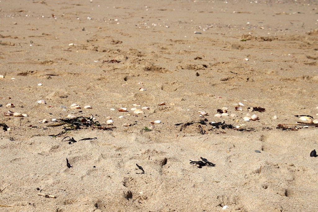 La veille de son départ le temps avait un peu tourné, elle est tendue. Je lui propose d’aller marcher sur la plage, On pourrait ramasser quelques verres roulés. On tente plusieurs stratégies, regard en surplomb ou fouissage des couches de cailloux, on fait une belle récolte, on ne garde que ceux aux bords totalement adoucis, les autres sont rejetés à la mer.